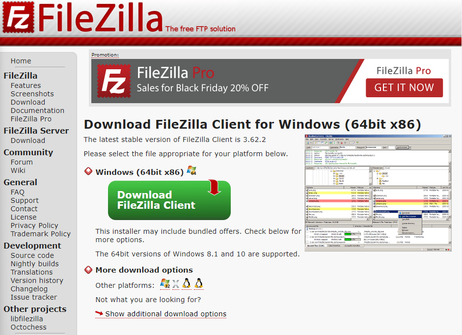 1. 아래의 파일질라 공식페이지로 들어가준다. 자신의 OS 환경에 맞는 것으로 다운로드한다.