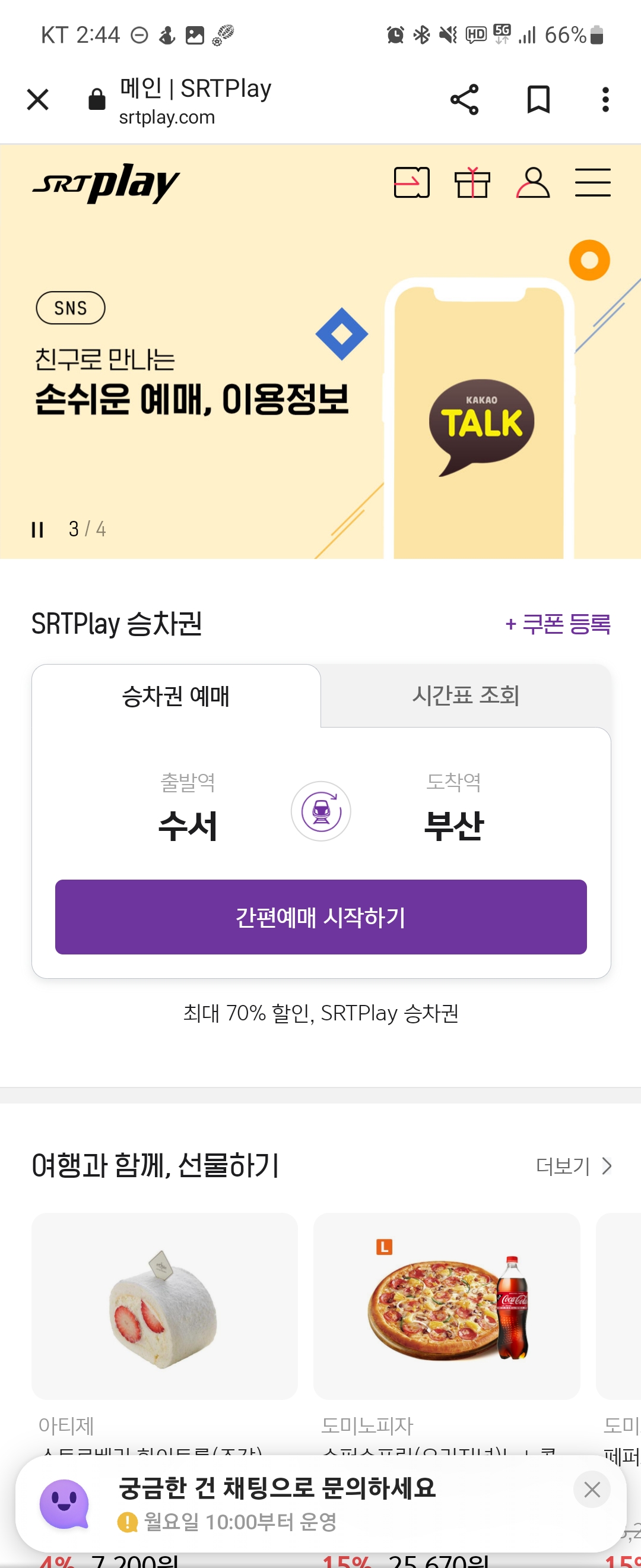 srt play 홈페이지로 들어가서 예매하면 최대 70%까지 요금 할인이 적용된다.