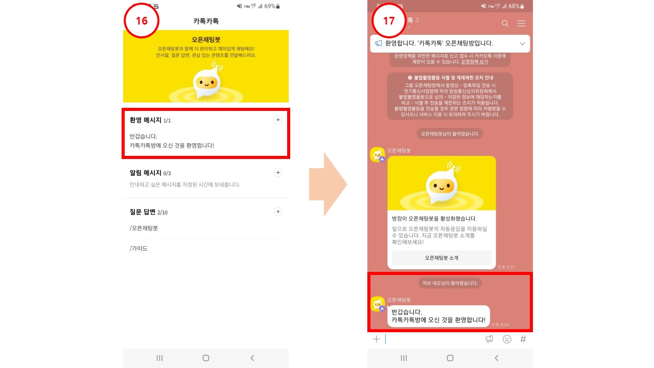 STEP 11. 그러면 오픈채팅봇이 활성화된 것을 확인할 수 있다.
