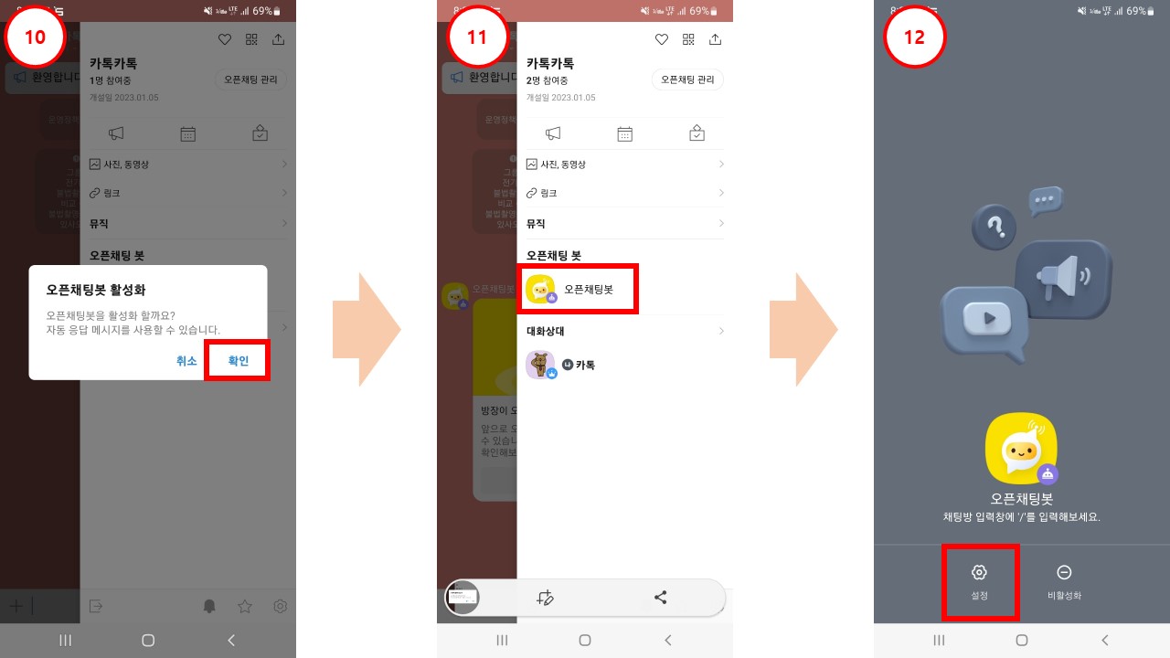 STEP 9. 오픈채팅봇 활성화를 눌러서