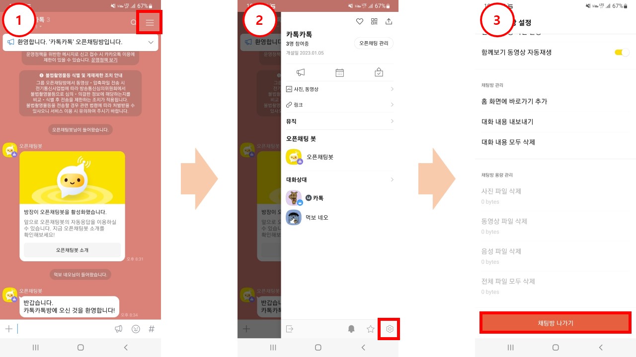 STEP 5. 나가기를 눌러주면 오픈채팅방은 삭제된다.