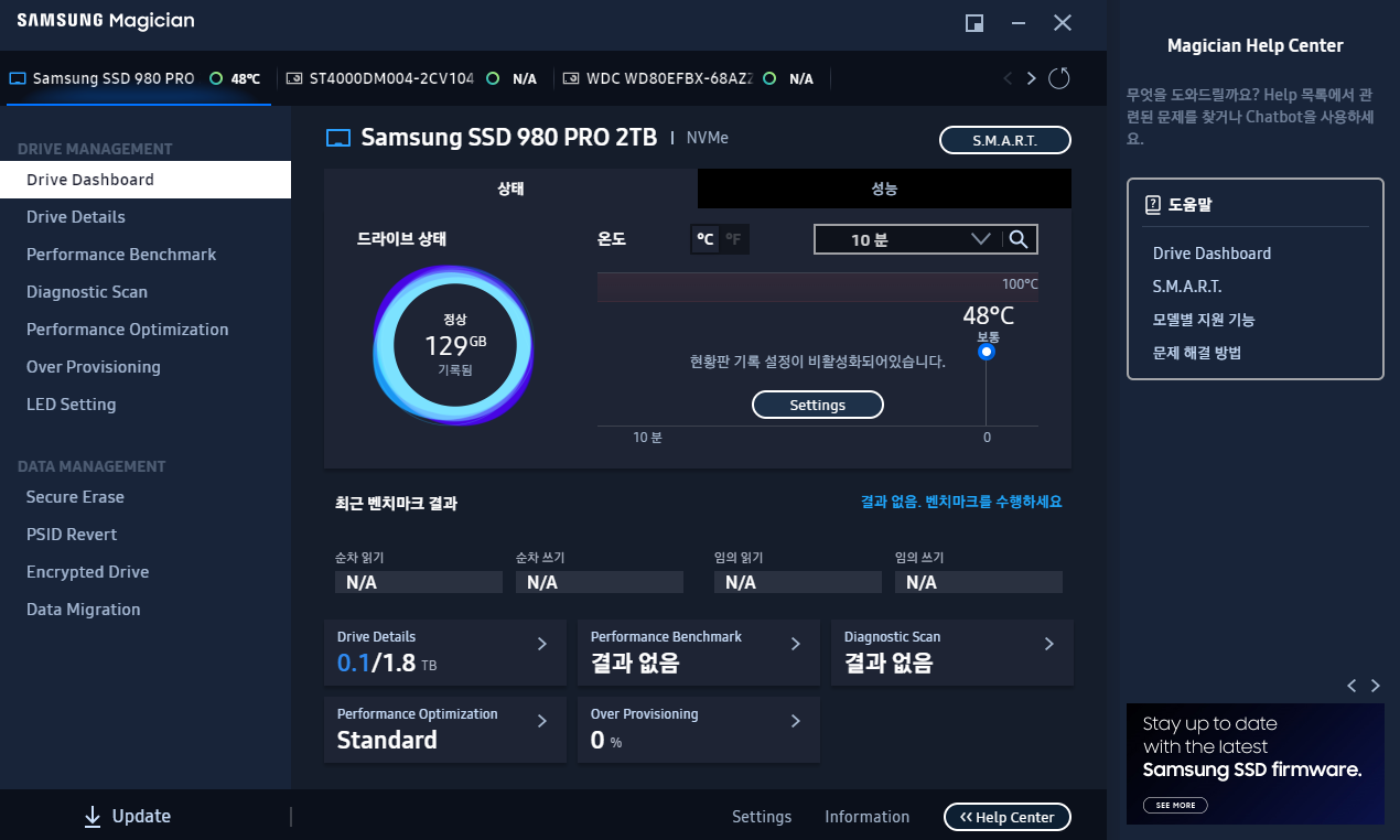 최신 업데이트된 Samsung Magician software와 설치 가이드, Data migration 소프트웨어, 사용 설명서, 펌웨어, NVMe 드라이버, DC 툴킷을 다운로드 하세요.