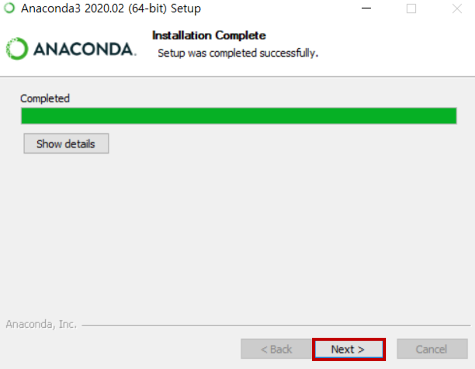 그럼 설치가 진행되고, 완료되면 Next 버튼이 활성화됩니다. Next 버튼을 눌러주세요.