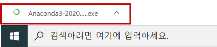 그럼 아나콘다 설치 파일이 다운받아질텐데요. 다운로드가 완료되었으면 설치 파일을 클릭해줍니다.