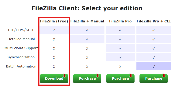 파일질라 다운로드 페이지에서 자신의 운영체제에 맞게 파일질라를 다운로드합니다. 저는 윈도우를 사용하고 있으므로 윈도우 운영체제에 맞는 파일을 다운로드 하겠습니다. 아래 그림에서 초록색 다운로드 버튼을 눌러줍니다.