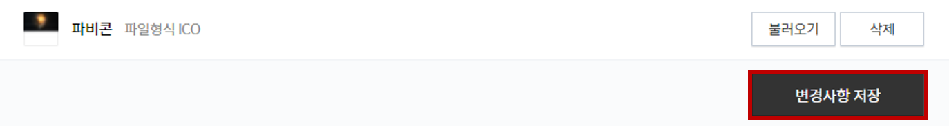 자, 이제 파비콘에 파일이 업로드 된 것을 확인할 수 있습니다. 업로드가 되었으면 변경사항 저장을 눌러주시면 됩니다.
